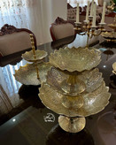 ست پذیرایی برنجی هندی سه تکه طرح لوتوس طلایی قلمزنی شده