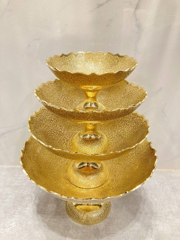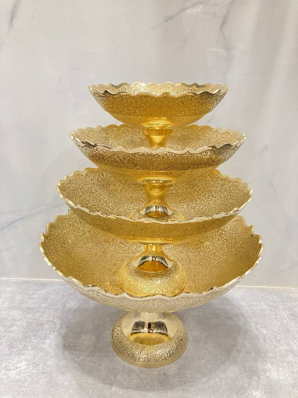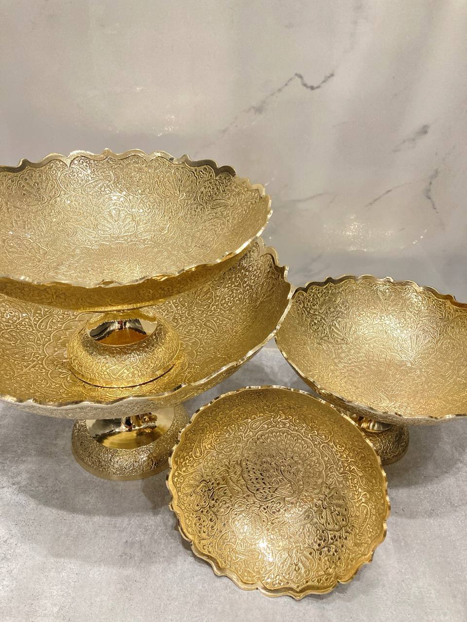این ظروف از جنس آلیاژ فلزی با آبکاری طلایی براق ساخته شدهاند که کیفیت سنگین خوشساخت و درجهیک آنها، دوام و وقارشان را تضمین میکند. این کاسهها نه تنها برای سرو میوه آجیل دسر عالی هستند، بلکه میتوانند بهعنوان دکوری روی میز یا کنسول شما نیز فوقالعاده باشند.